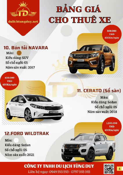 Nhưng bạn lo ngại không biết thủ tục thuê xe như thế nào? Công Ty Du Lịch Tùng Duy luôn cung cấp cho bạn dịch vụ thuê xe đơn giản, uy tín, chất lượng.